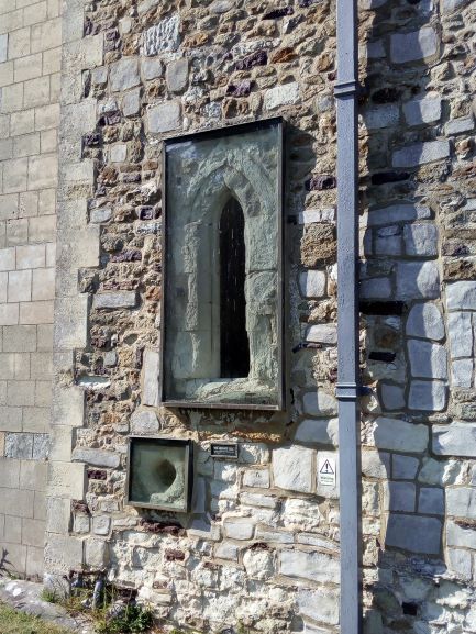 Roger the Hermit lived in a small room (a cell) inside Bletchingley Church. There is a small window, known as a Hermit’s Squint, built into the south wall of the church – as Uvedale Lambert has pointed out “... at least the Bletchingley hermit had the sense to choose the sunny side, and not the north side...”. The window allowed people to talk to Roger in order to make confessions and to ask for his advice on matters. He could also watch the sanctuary light inside the church by night and day.
