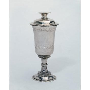 The cup was made in London 1568-9 and is now on loan to the Victoria & Albert Museum.