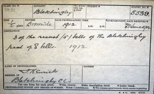 Picture of three of the Church Bells taken in 1912 by Jarvis Kenrick for the Photographic Survey..